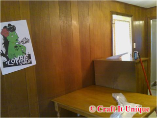 So anyways, this particular post is about my studio door. About a week ago, I was sitting in my studio, praying for inspiration and getting severely off task. And it hit me...no inspiration or creativity because my studio space seriously is dark and drab and boring! Its got very 70s dark wood paneling :( Love the 70s, just not the wood paneling. So I came up with a plan to revamp the studio.