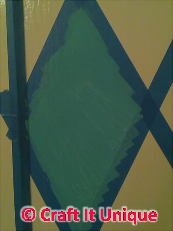 Then I took the painters tape and marked off my diamonds all the way across the paneling.